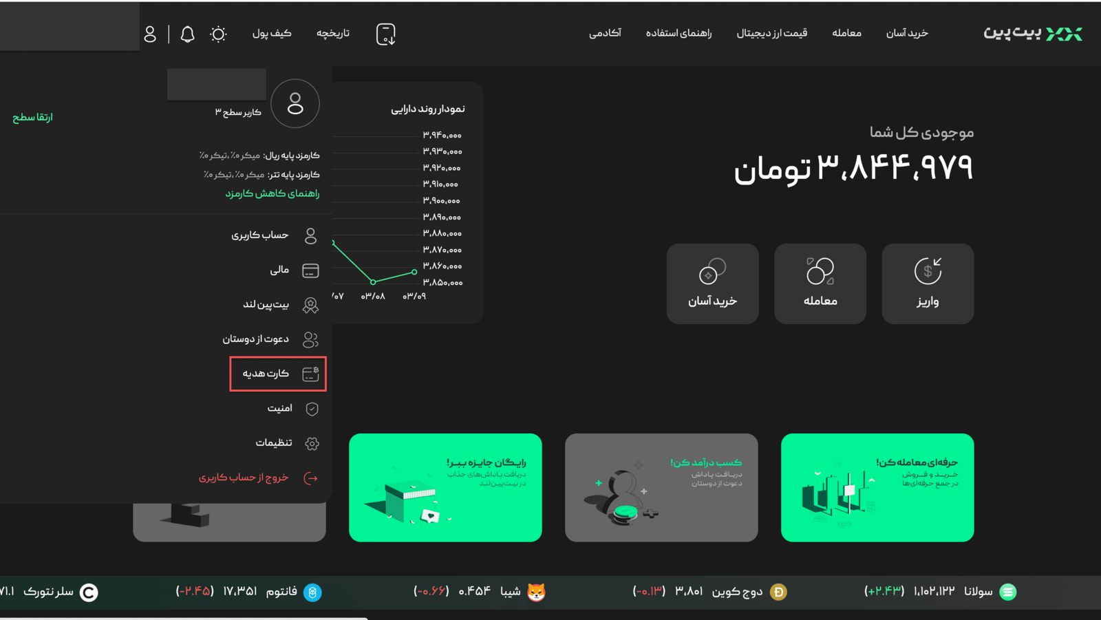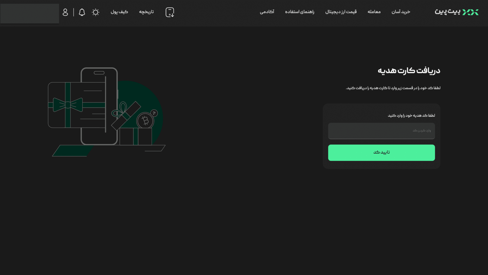 ۸. در صورت صحیح بودن کد گیفت کارت، موجودی کارت هدیه به کیف پول بیتپین شما اضافه میشود.