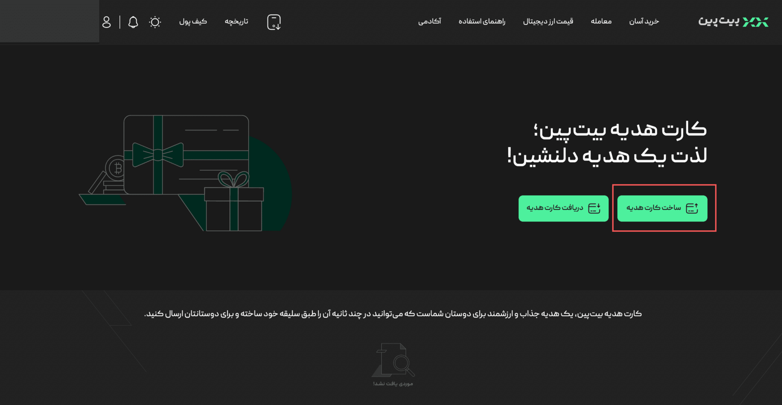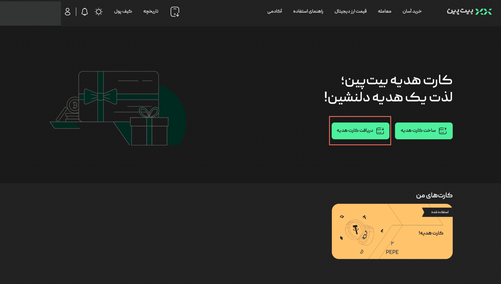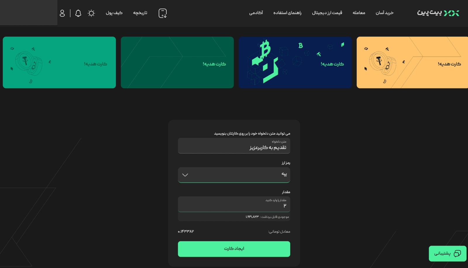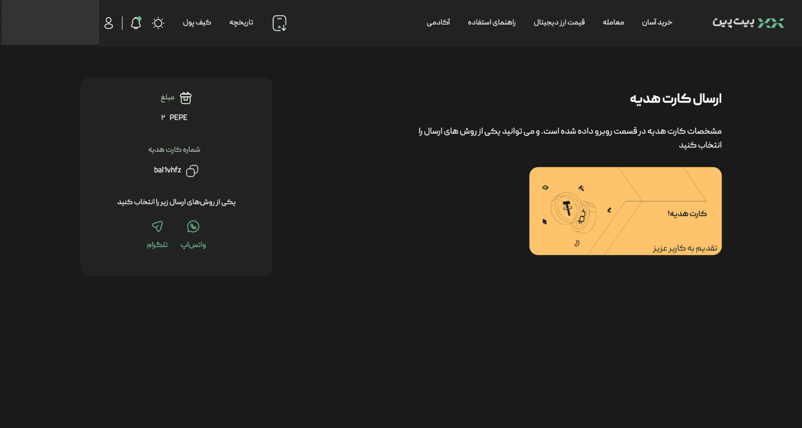 نکته: برای ایجاد، ارسال و دریافت کارت هدیه ارز دیجیتال، میبایست هم فرستنده و هم گیرنده هدیه، عضو بیتپین باشند.
