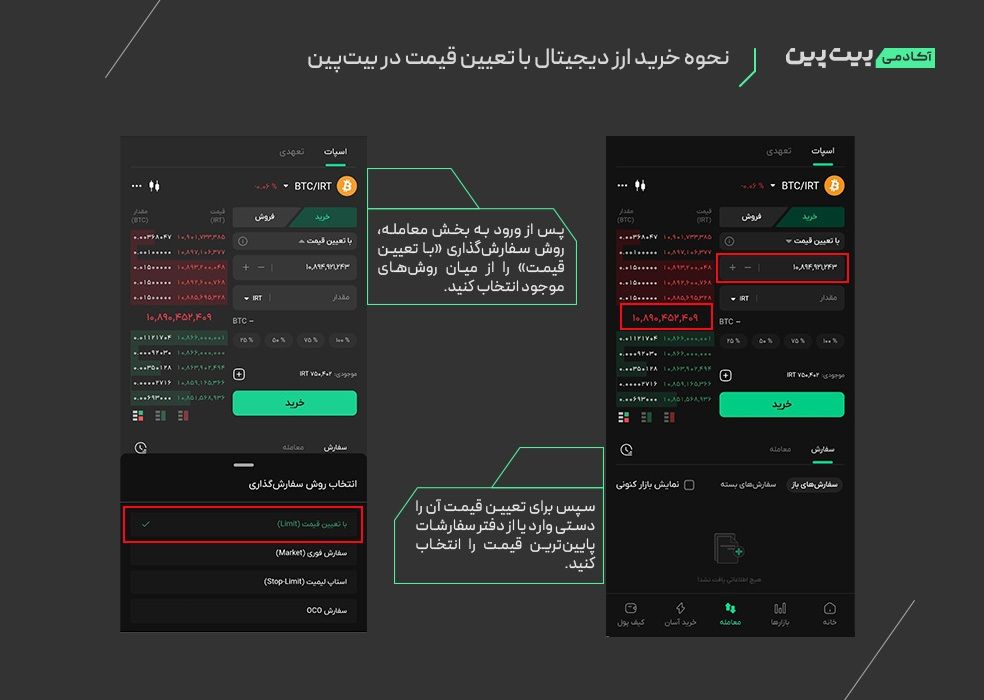 چگونه در بیتپین سفارش با تعیین قیمت بگذاریم؟