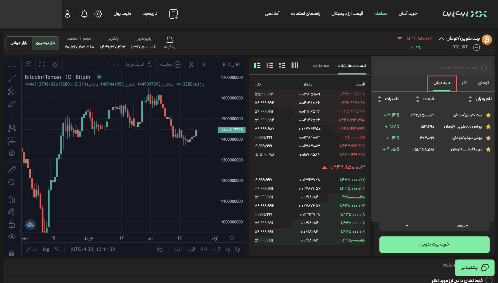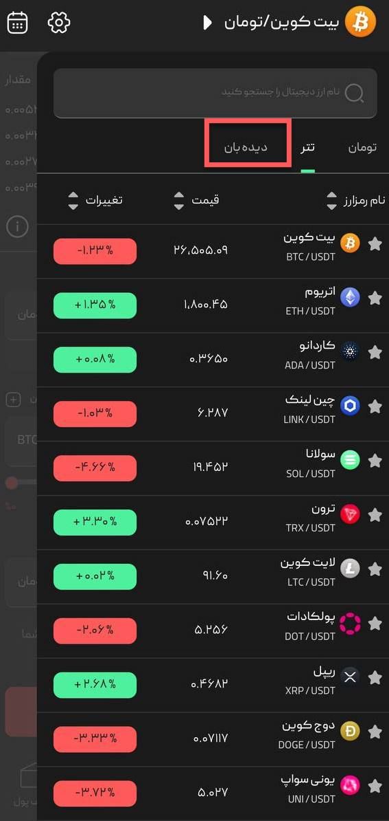 با توجه به افزایش مداوم تنوع رمزارزهای قابل معامله در پلتفرم بیتپین، بخشی بهعنوان دیدهبان به امکانات موجود اضافه شده که میتوانید با استفاده از آن، رمزارزهای منتخب خود را ستارهدار نموده و از بخش دیدهبان، سریعتر به آنها دسترسی داشته باشید.