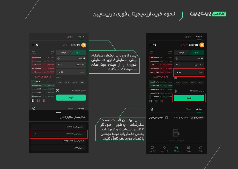 در ادامه آموزش میدهیم که چگونه در بیتپین سفارش فوری بگذاریم: