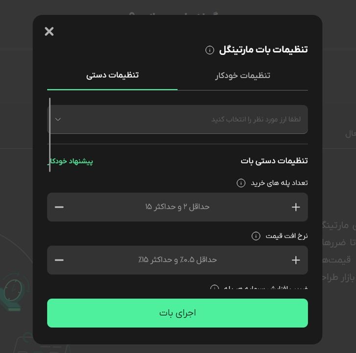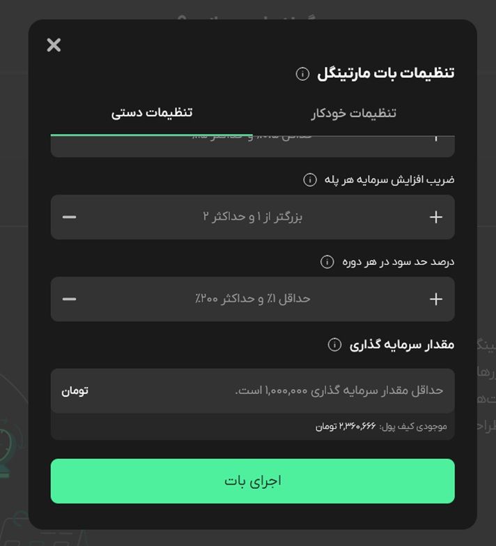 ۳-در این صفحه، باید تنظیمات بات مارتینگل را وارد کنید.