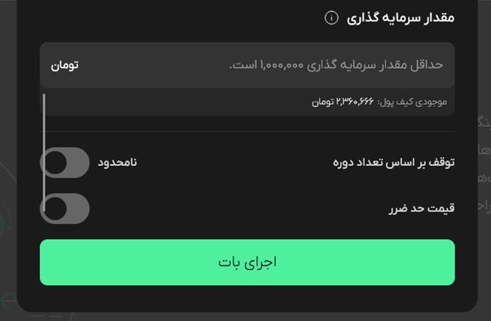 مقدار سرمایه‌ای که کاربر برای سفارش‌های هر دوره بات مارتینگل اختصاص می‌دهد.