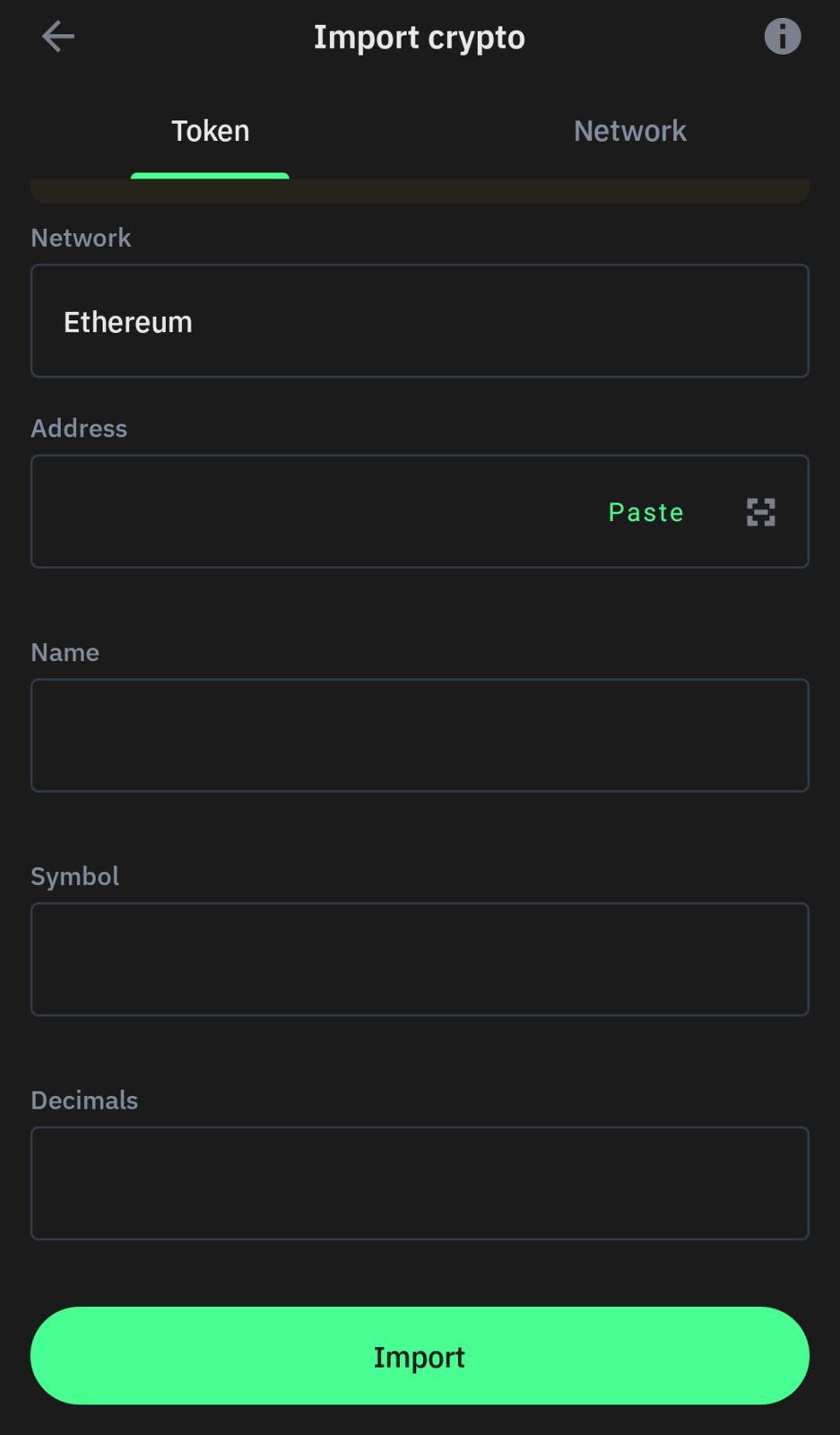 با کپی کردن آدرس کانترکت در کادر مربوطه، فیلدهای بعد بهصورت خودکار پر میشوند. در نهایت با زدن دکمه Import توکن موردنظر به تراست ولت اضافه شده و میتوانید موجودی مربوط به آن را در کیف پول خود مشاهده کنید.
