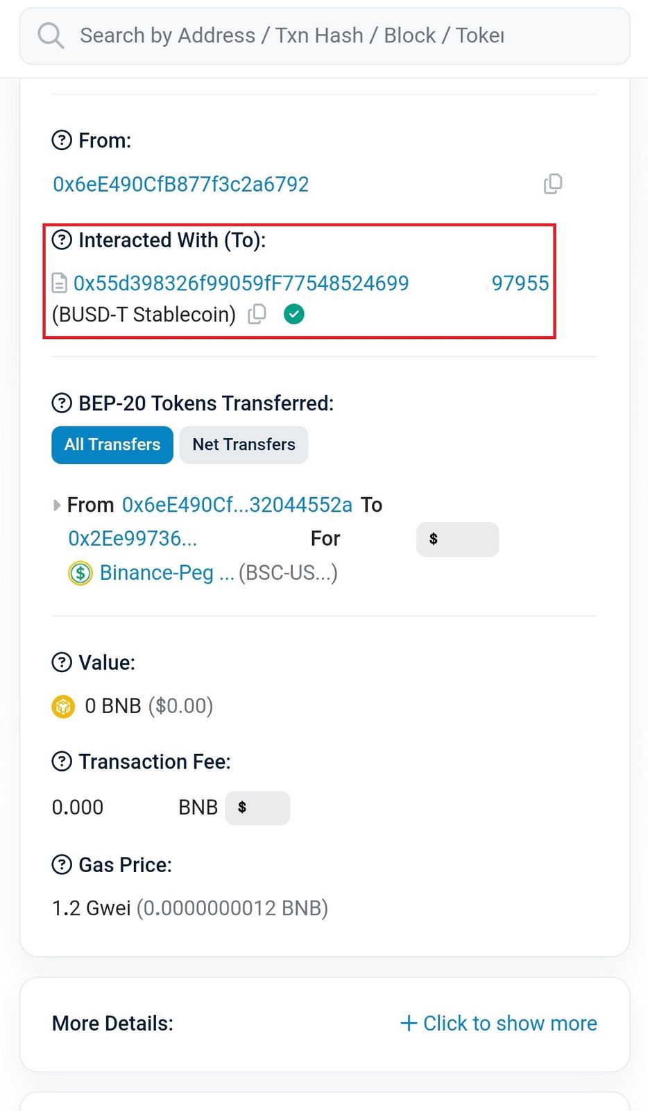 بعد از زدن لینک تراکنش، به شبکه مربوطه منتقل میشوید. در اینجا باید آدرس کانترکت رمزارز را کپی کنید.